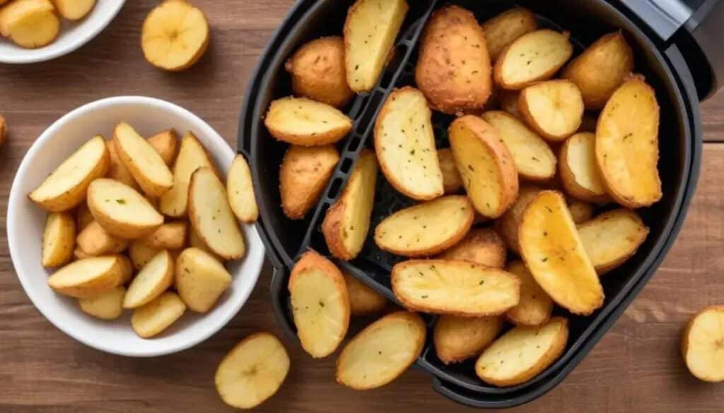Uma das receitas com batata na air fryer mais amadas é a batata frita. Basta cortar as batatas em palitos, temperar com sal e um fio de azeite e programar a fritadeira por cerca de 15 a 20 minutos a 200°C. O resultado é uma porção crocante por fora e macia por dentro, ideal para acompanhar qualquer prato ou servir como um lanche rápido.